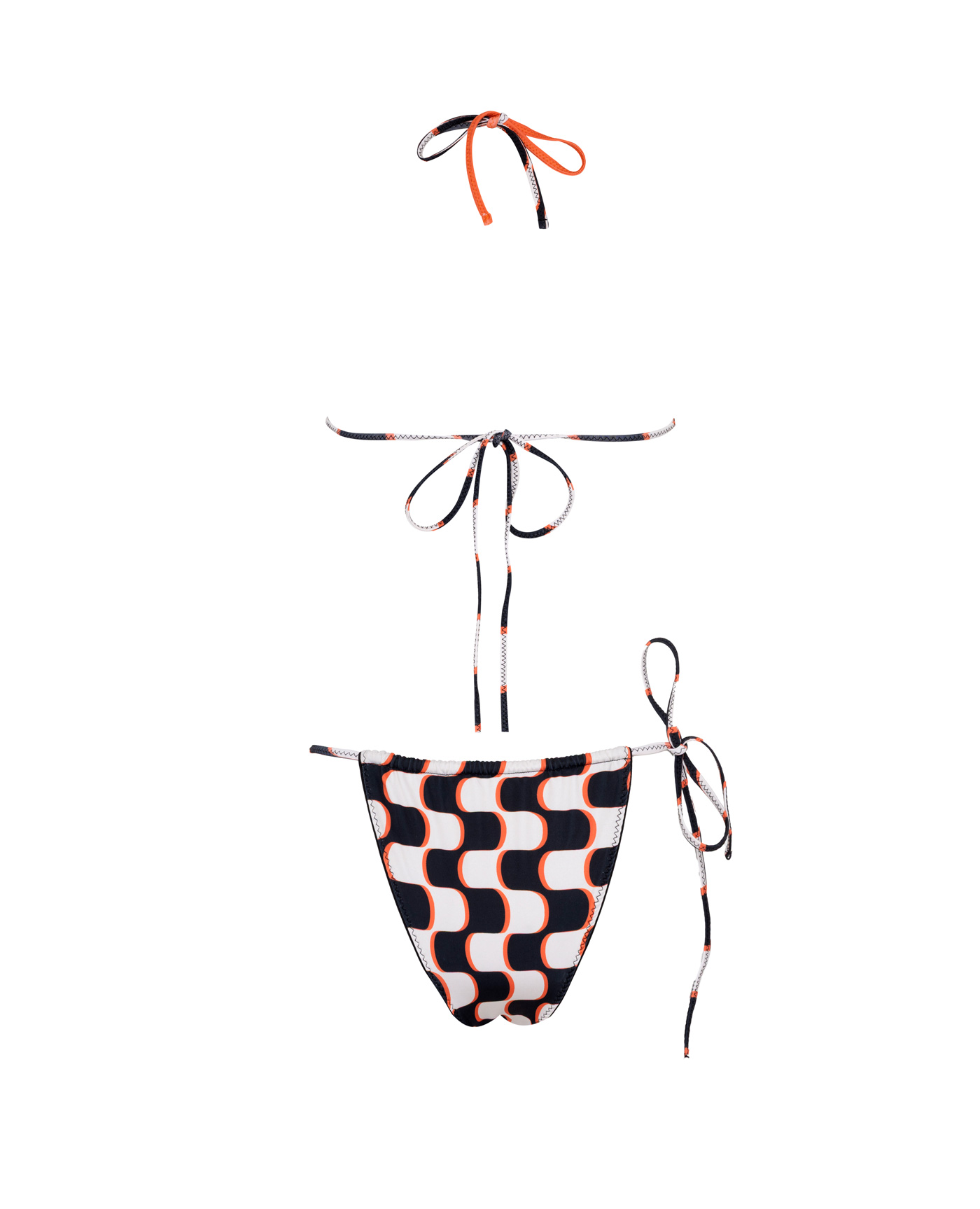 Bikini set in our Leblon print. Triangle-style halter top with adjustable ties at the neck and back. Tie-side bottoms for a customizable fit. Made in soft, elastic fabric and includes removable cups for added comfort and support.